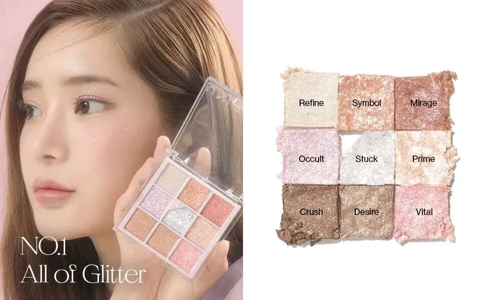Paleta de sombras de ojos vegana que consta de nueve tonos duraderos en formulaciones mate, brillantes y con glitter, proporcionando el máximo brillo para completar tus looks de maquillaje. La fórmula suave y altamente mezclable promete un brillo duradero.